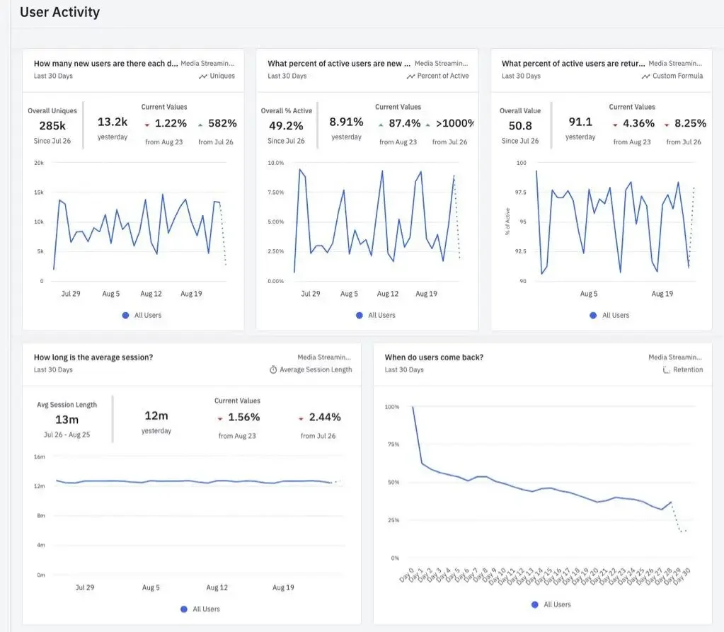 How to track it: Monitor your DAU, WAU, and MAU counts and ratios. Analytics dashboards (Amplitude, etc.) can chart daily active trends and calculate stickiness for you. Look at the DAU/MAU ratio. E.g., 50% means users on average use the app 15 days a month, whereas 20% might indicate it’s more of a weekly-use tool. Also compare week-to-week and month-to-month growth in active users. Are daily actives increasing alongside total users? A growing base of daily loyalists is a powerful signal that users find real, recurring value in your product.