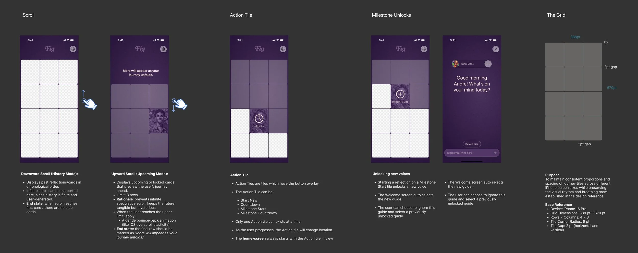 We approached Fig as a daily companion, not a tool. Every design and product decision was filtered through one core question: “Does this help the user pause and breathe?“. Key principles: gentle guidance, not rigid structure, warm, human language grounded in Scripture, calming UI with generous spacing, progress that unfolds naturally, not through pressure. Instead of overwhelming users with choices, Fig offers one clear moment of reflection at a time.